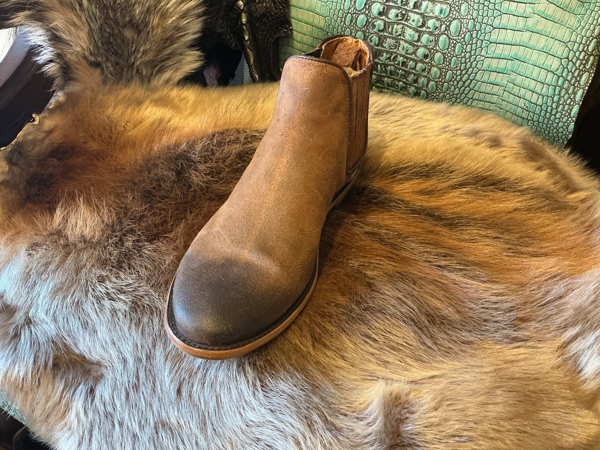 Handmade with Natural Cowhide, with a distressed finish - these short boots are made for a perfect fit. The elastic on the outer shaft has leather on the outer panels. Sturdy leather pull tab on the collar makes the boot easy to slip on and off.