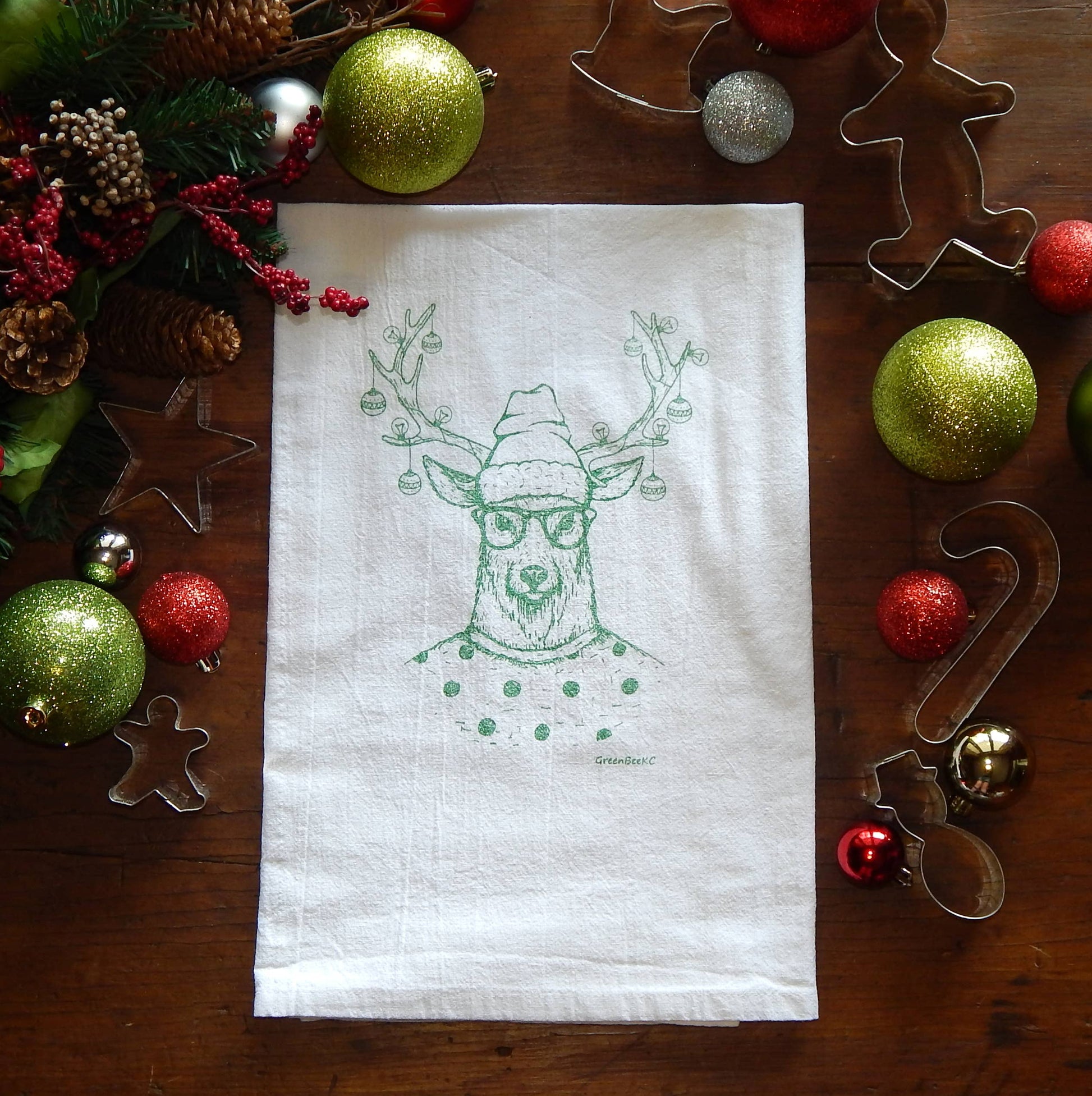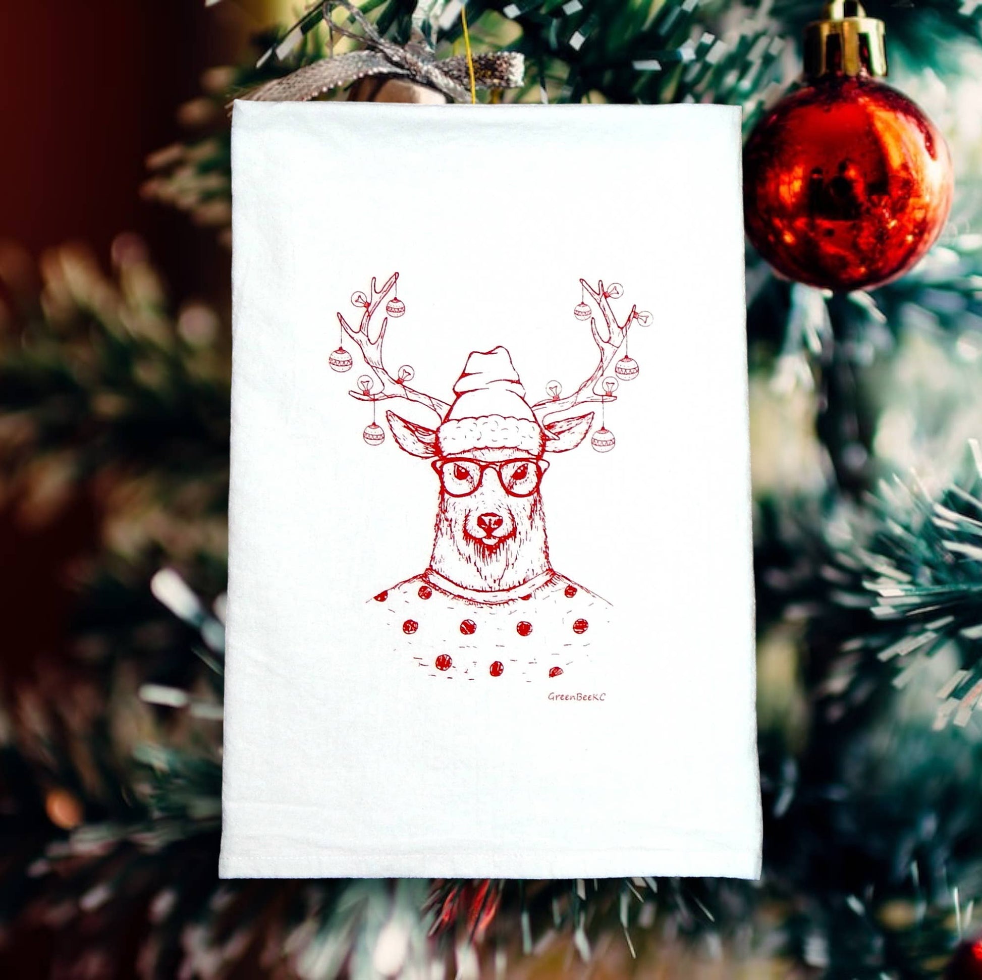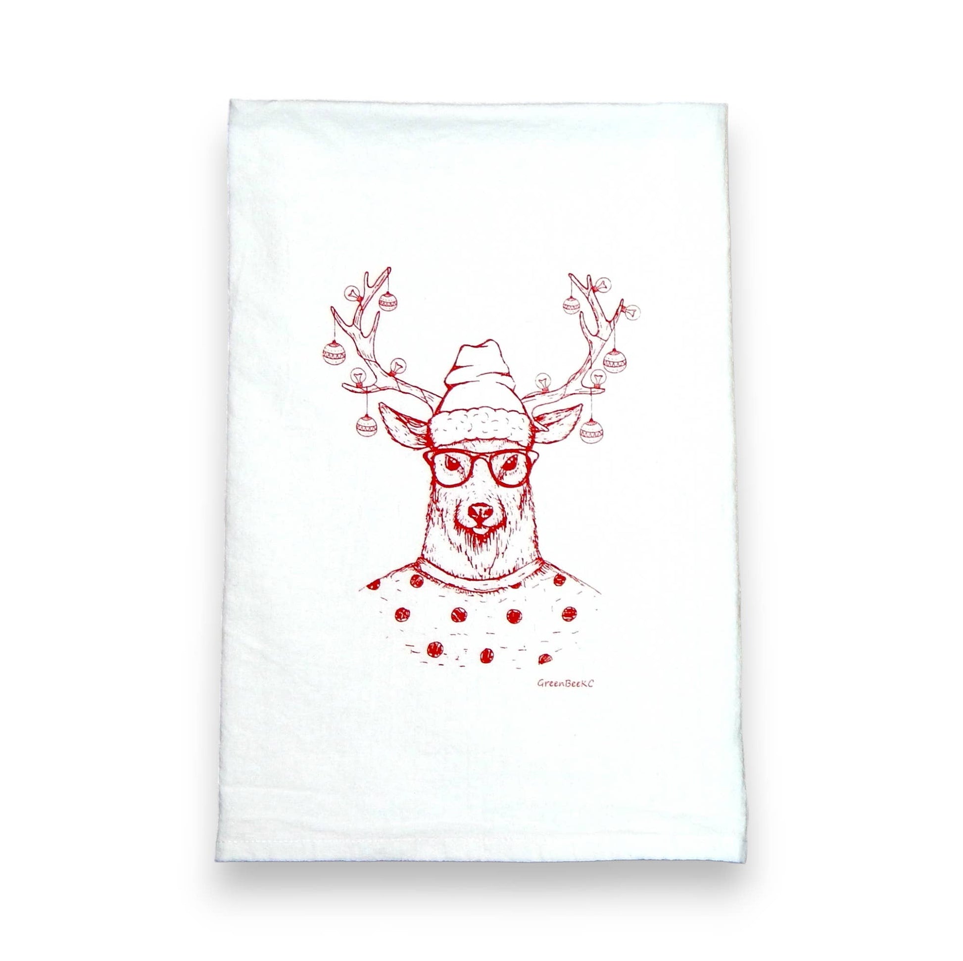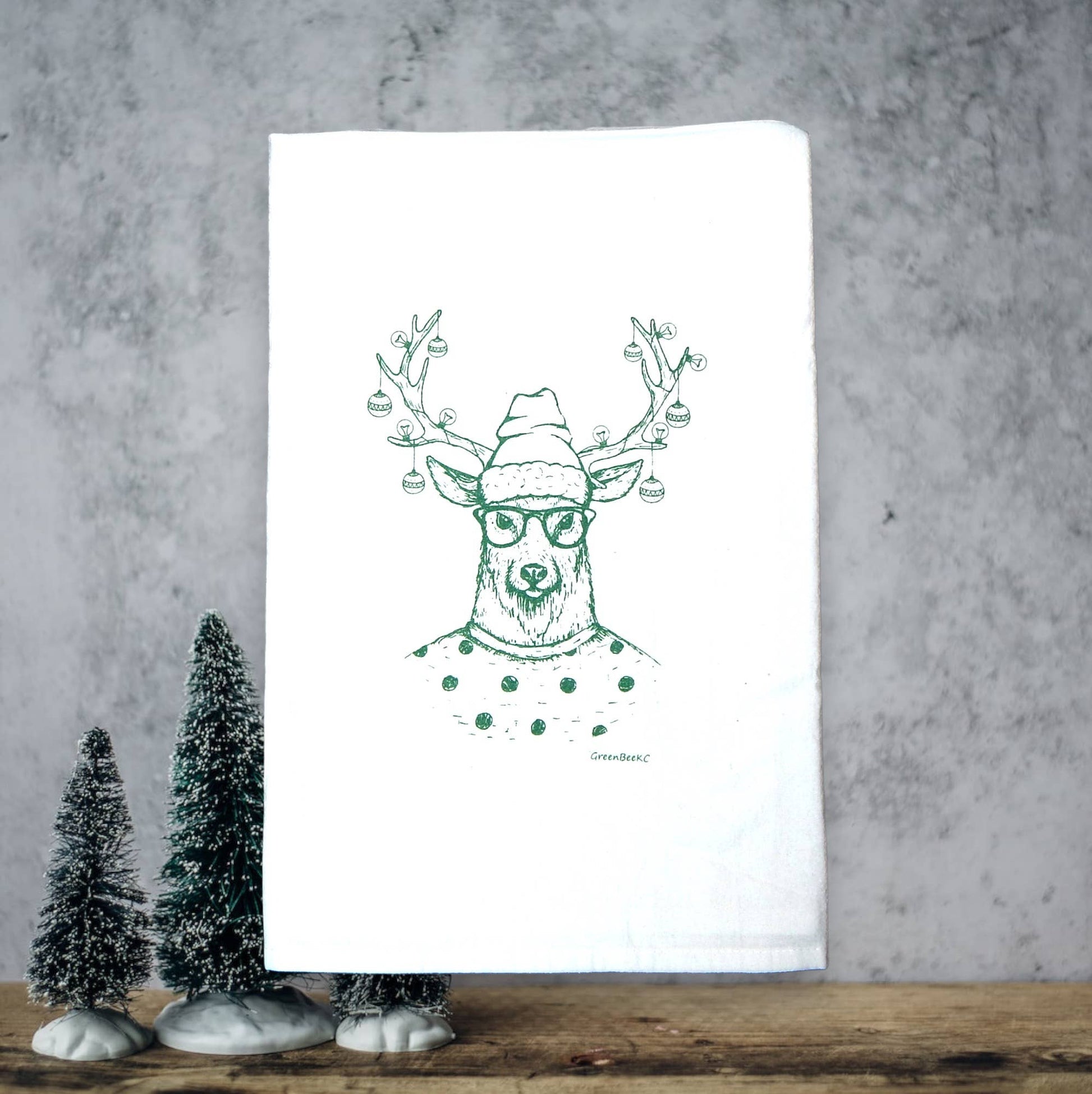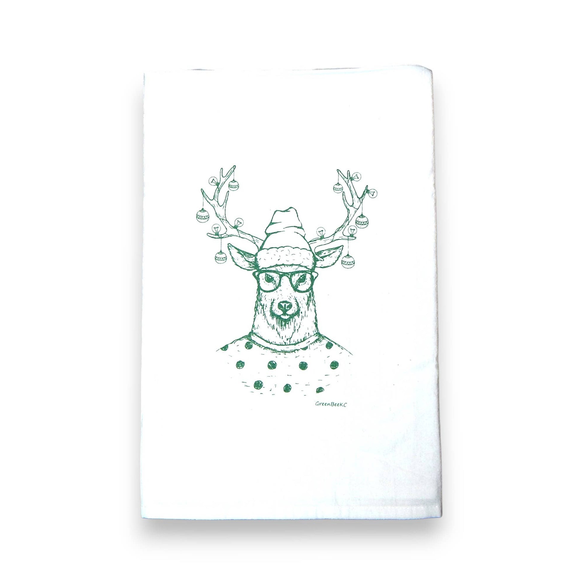This 'Hipster Reindeer"' tea towel is a low maintenance tea towel for high maintenance messes.