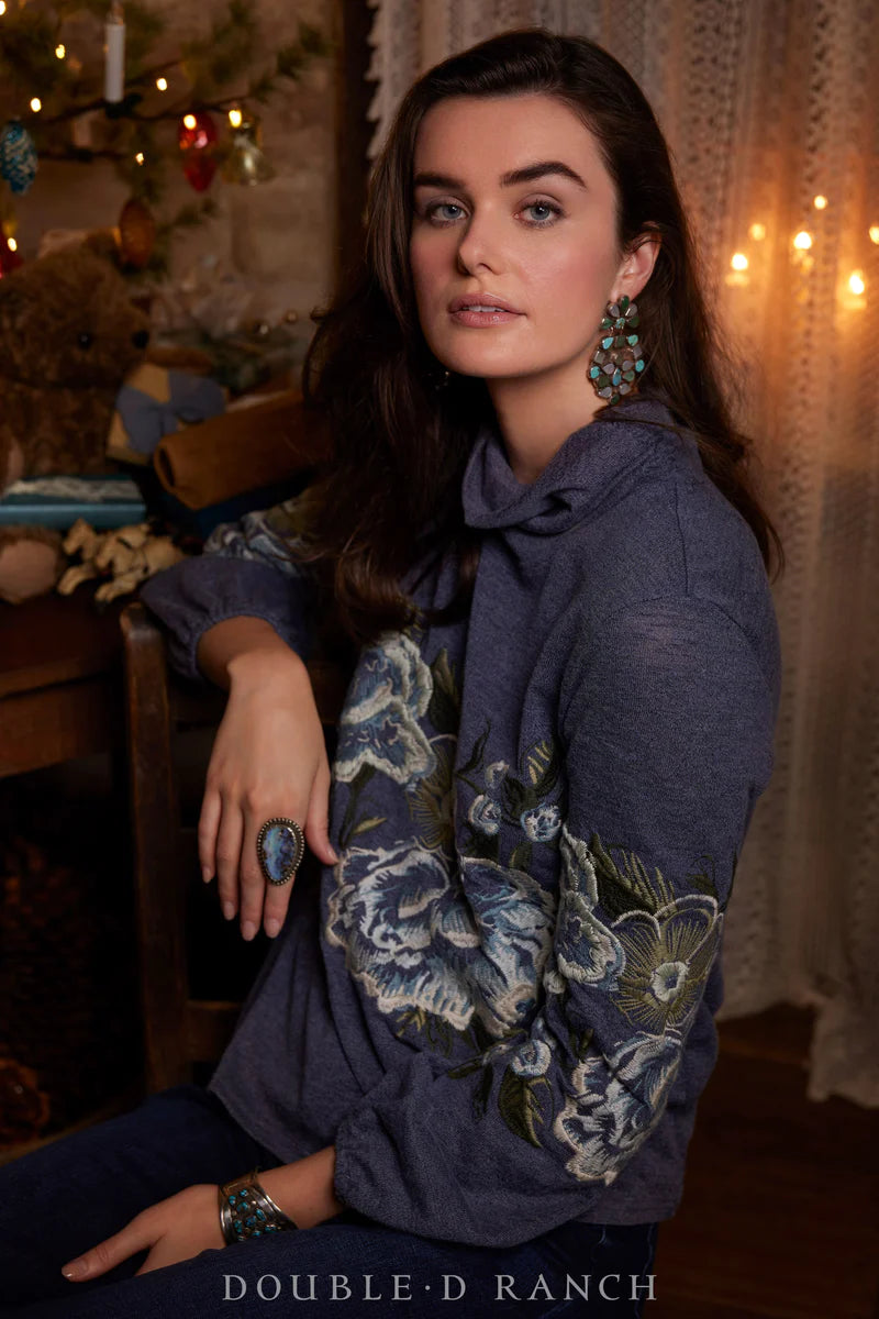 First of all, this silhouette is stealing hearts. The cowl neck, the gathered sleeves, the length – it all has a very fresh, en vogue vibe. The color is also gorgeous, kind of a heathered indigo, and the stunning scaled-up floral embroidery is so intricate you can’t take your eyes off it. It’s versatile enough for your everyday outfit, but chic enough for when you want to dress to impress.