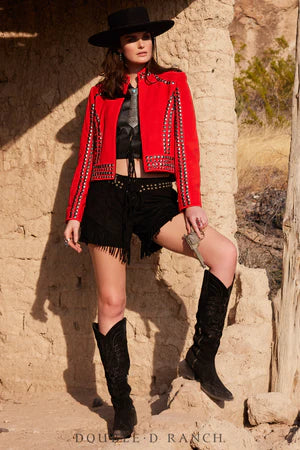 We’re drooling over this jacket! As much as we love to play with prints and patterns, sometimes you just can’t beat the chic of a standout solid – and this gorgeous goat suede jacket NAILS IT. The sleek straight-line silhouette is given a rockstar edge with the dimensional square stud trim for an irresistible vibe that’s all-around awesome from daytime to the dancehall.