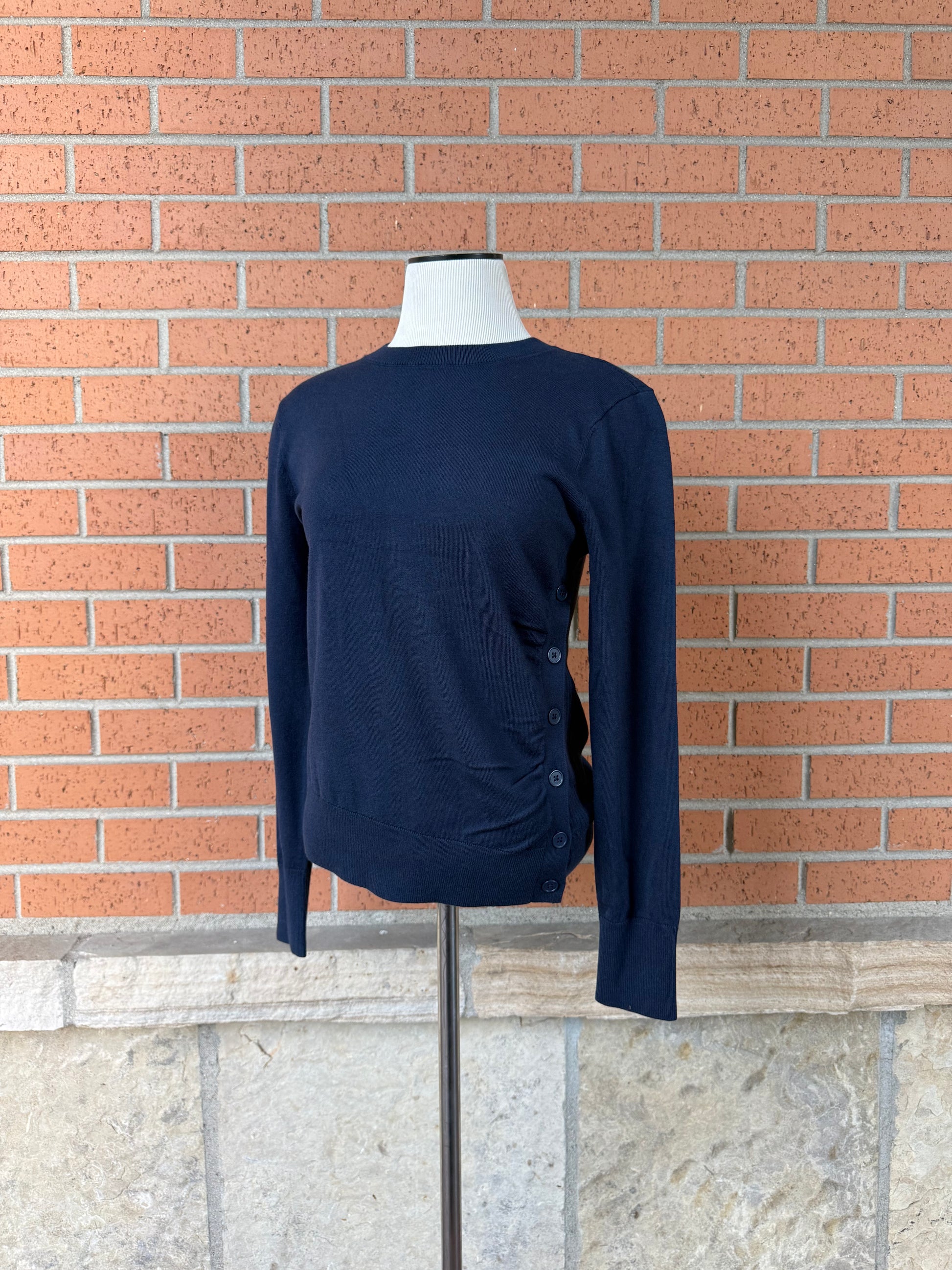 Elliott Lauren long sleeve sweater in 'midnight' with 6 button detailing down the front left side.