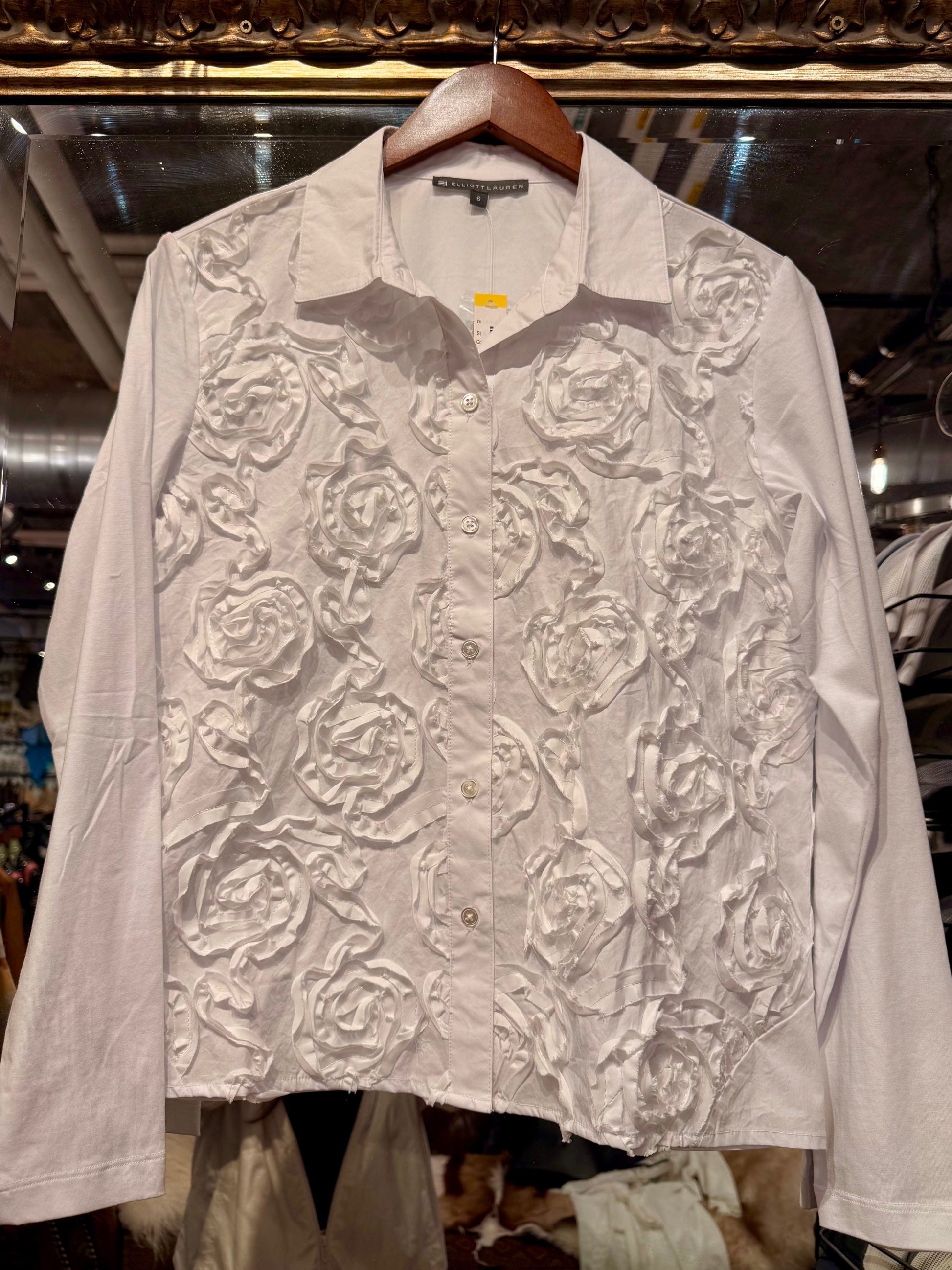 Elliott Lauren white long sleeve floral blouse.