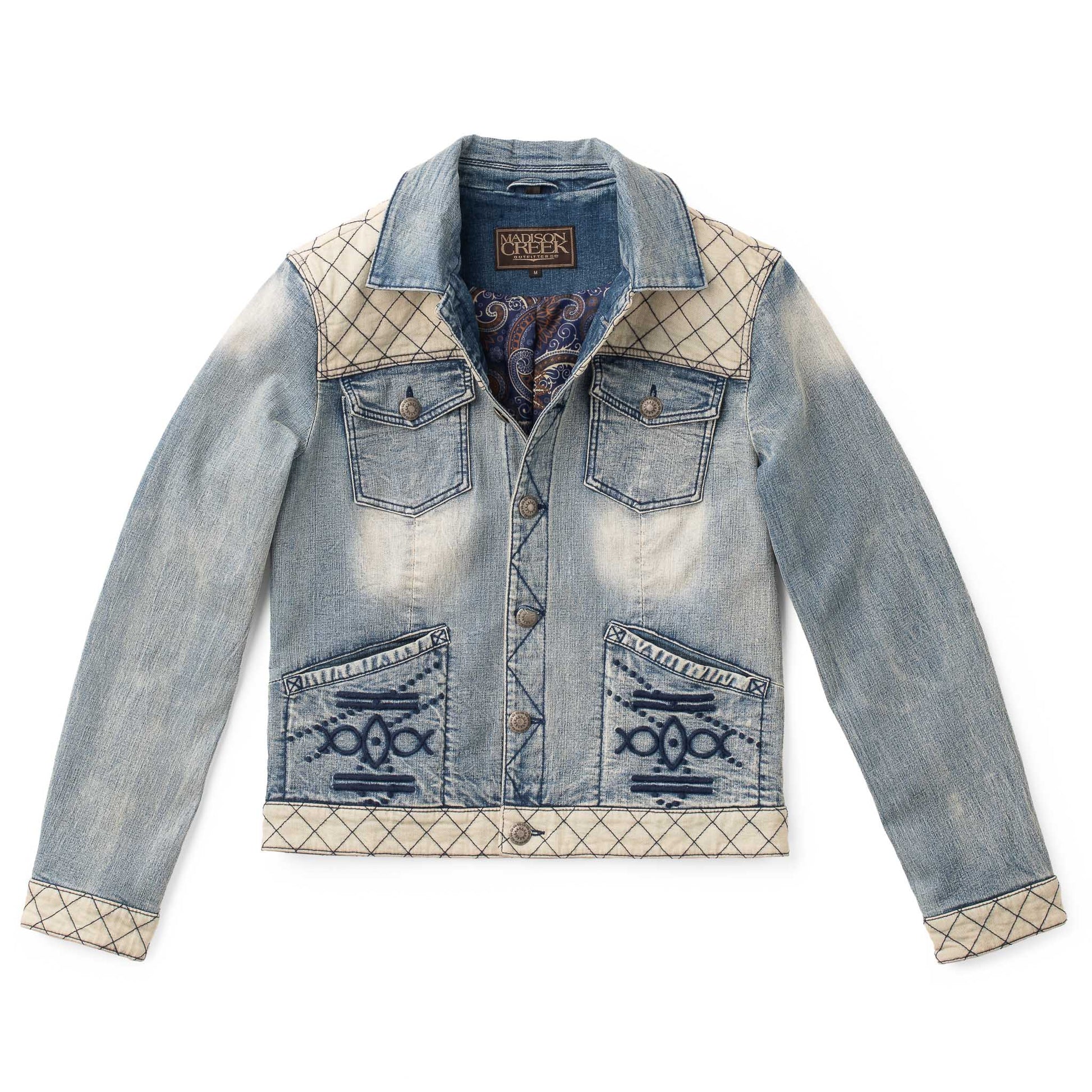 The Faith Denim Jacket offers a fresh twist on a timeless Western classic. Featuring soft-washed denim accented with contrast cream panels in a quilted grid pattern, this jacket blends everyday style with unique detailing. Thoughtfully designed embroidery, paisley print lining, and classic snap-front styling make it a standout layer for casual days or dressed-up evenings.