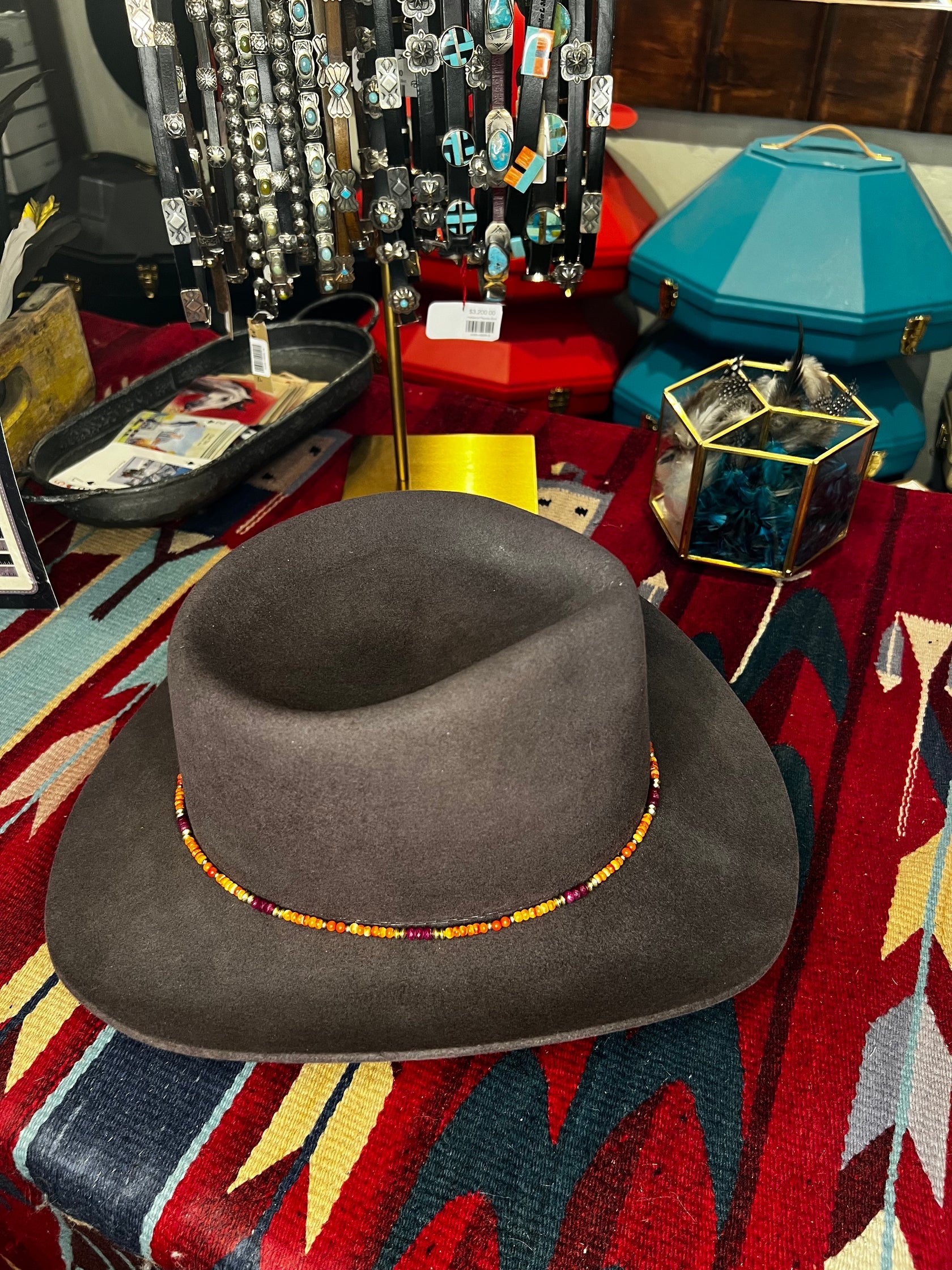 Garnet Pink Orange Gold Hat Band