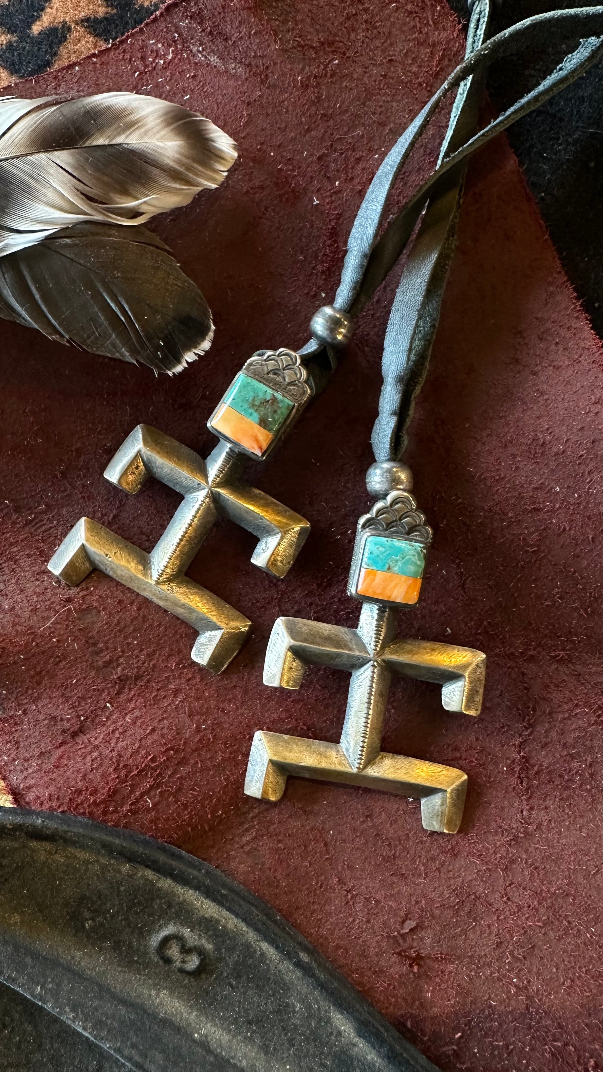 Coin Silver, Spiny Oyster and Fox Tufa Cast on an adjustable leather strap.