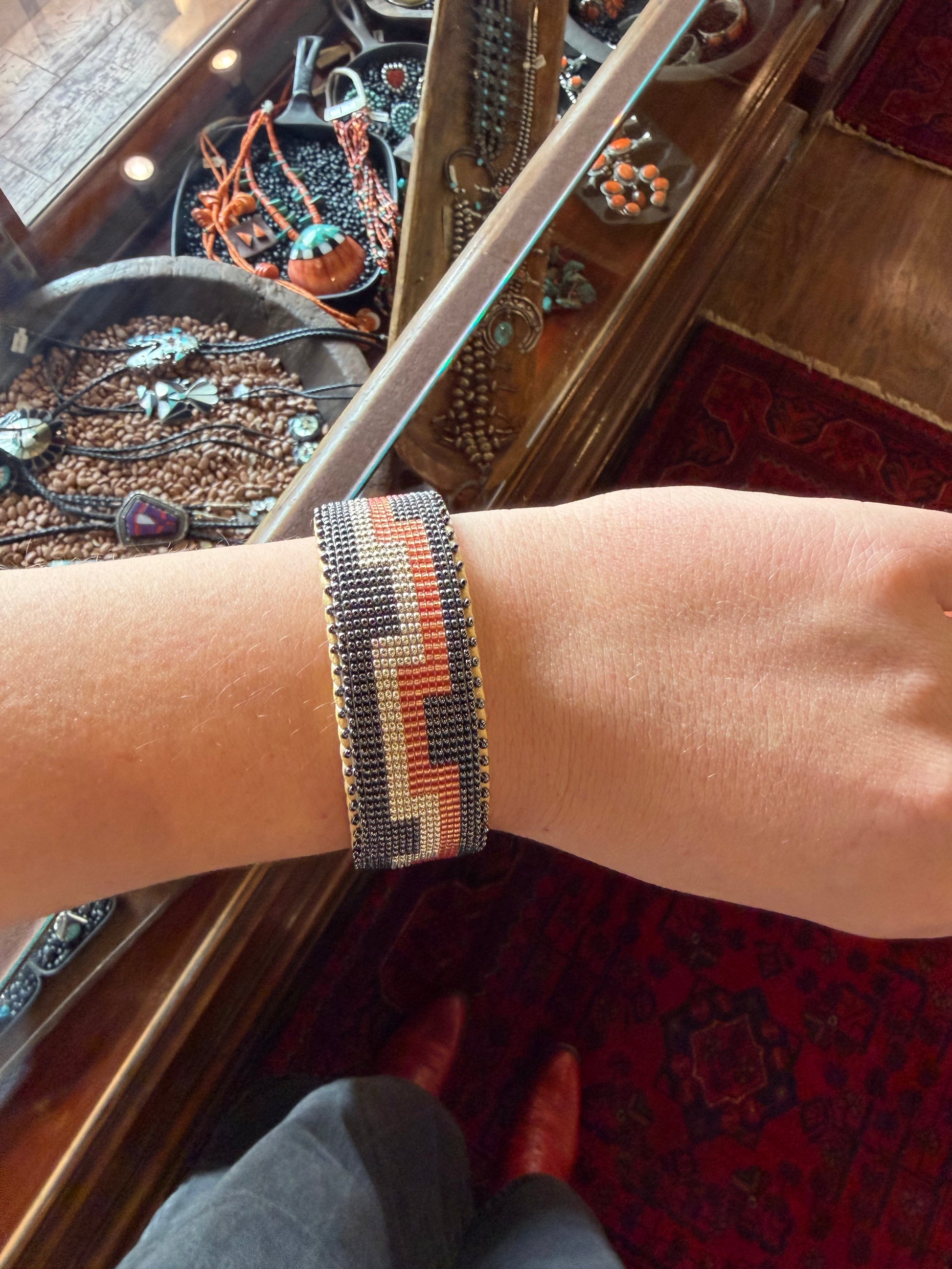 ETKIE bracelets are hand-beaded in collaboration with talented Navajo artisans in New Mexico.