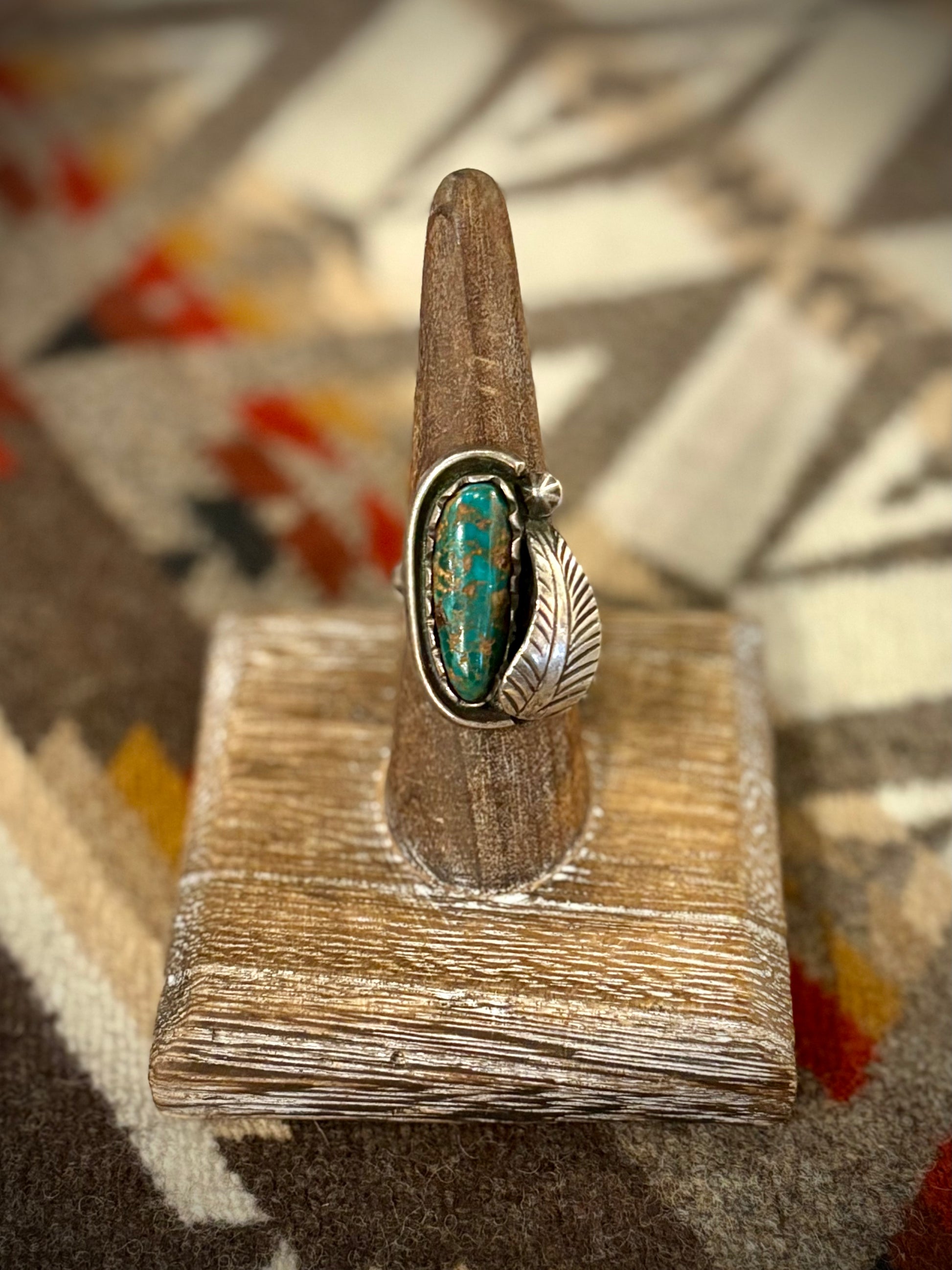 Long Oval Turquoise Ring with Single Sterling Leaf